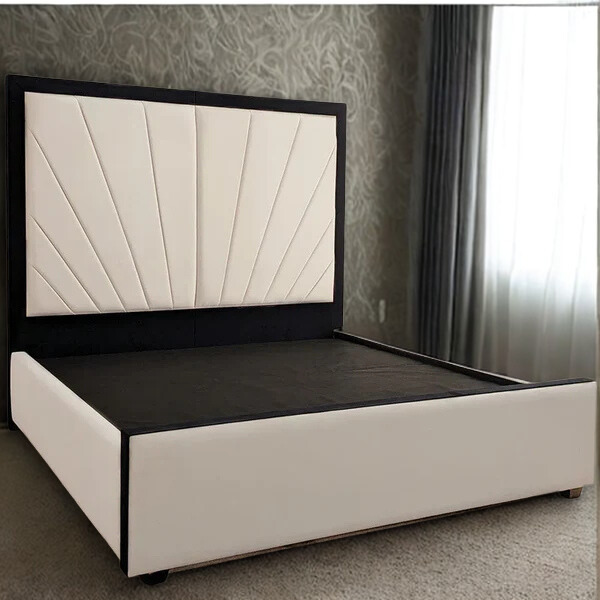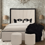 Soft, luxurious cream upholstery is paired with striking black accents, delivering a refined contrast and a contemporary, elegant appeal.