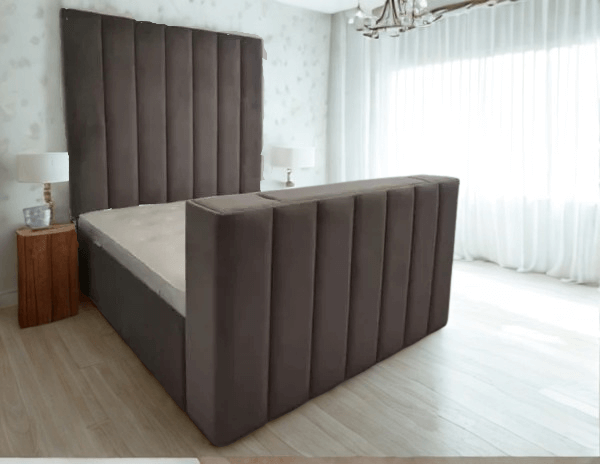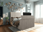 The Dickens Sleeper combines refined luxury, exceptional comfort, and cutting-edge technology. Showcasing sleek, customizable upholstery and a discreet remote-controlled TV lift built into the footboard, it delivers effortless entertainment with style. TV not included. Available in sizes up to Emperor and with adjustable headboard heights, the Dickens Bed is crafted to suit your individual preferences, creating a truly bespoke and premium bedroom experience.
