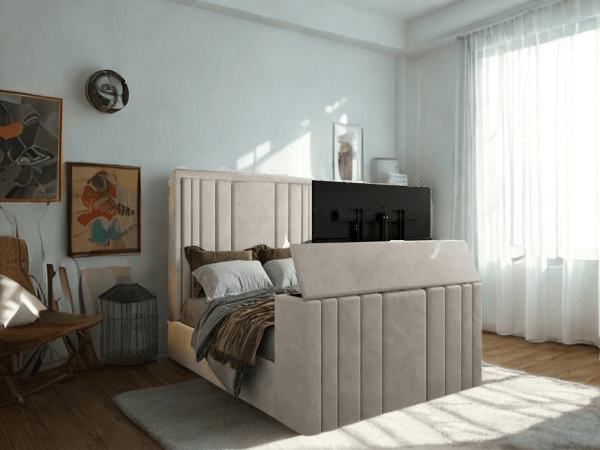 The Elliott Bed combines modern design with innovative functionality, adding a touch of sophistication to any bedroom. Wrapped in premium upholstery and featuring a discreet remote-controlled TV lift, it delivers the ideal balance of comfort, elegance, and entertainment—tailored to suit your unique style.