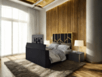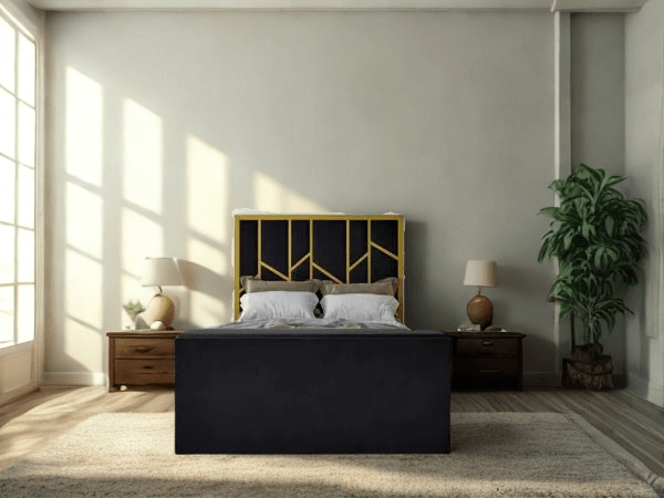 The Evie Sleeping Bed redefines modern luxury with its elegant design, highlighted by sleek metal accents in Black, Gold, or Silver and upholstered in plush premium fabric. Built for both comfort and convenience, it features a remote-controlled TV lift for seamless entertainment. Striking yet sophisticated, this statement piece transforms any bedroom into a refined sanctuary.