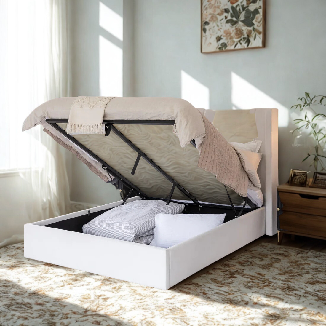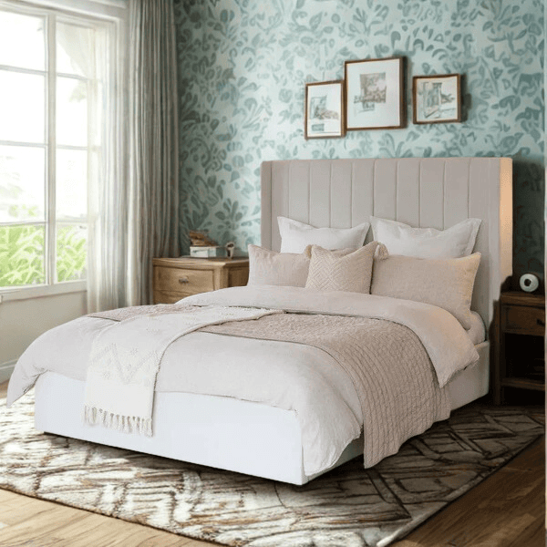 The Otley Wing Bed Frame in Ivory seamlessly combines contemporary design with comfort. Featuring a beautifully fluted headboard, it not only adds visual appeal but also enhances the cosy atmosphere of your modern bedroom. This king-size bed serves as a stunning centerpiece, inviting you to enjoy a restful night’s sleep every night. Perfect for larger bedrooms, it provides generous space for relaxation and ultimate comfort.