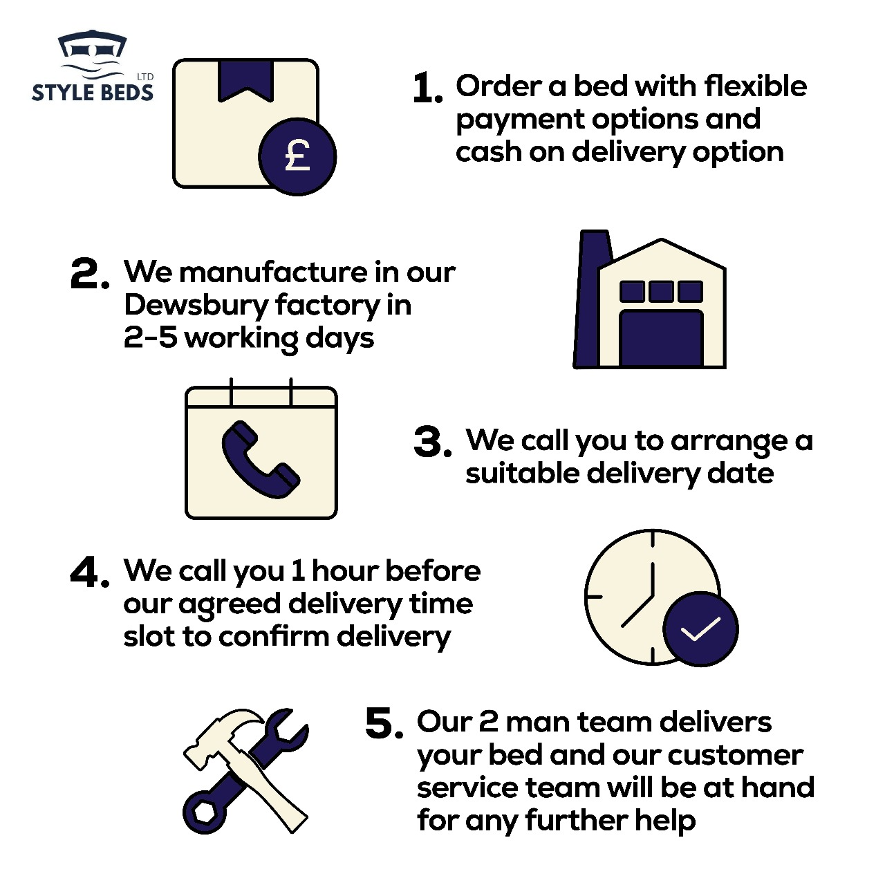 At Style Beds UK, we aim to provide reliable and timely delivery for all of our customers. This Shipping Policy outlines important information about how we handle the shipping of our products. Please read it carefully to understand our process.